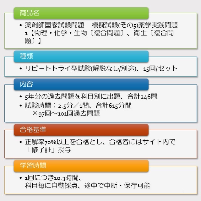 薬剤師国家試験問題 【リピートトライ型試験】(テストのみのe-ラーニング教材)