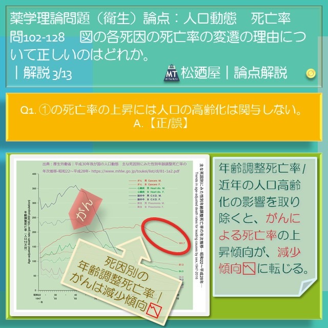 松廼屋|論点解説 薬剤師国家試験対策ノート問102-128【衛生】論点:人口動態 死因別の死亡率 1