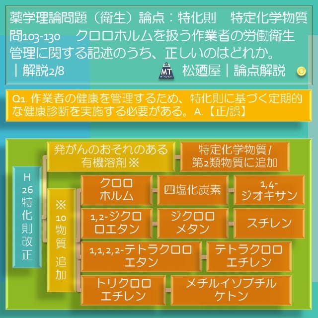 松廼屋|論点解説 薬剤師国家試験対策ノート問103-130【衛生】論点:労働安全衛生法 / 特化則 特定化学物質1