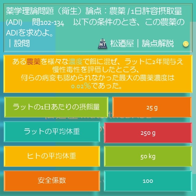 松廼屋|論点解説 薬剤師国家試験対策ノート問102, 問103-134【衛生】論点:農薬 / ADI