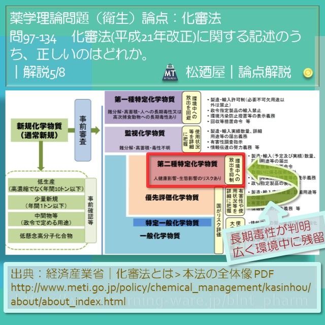 松廼屋|論点解説 薬剤師国家試験対策ノート問97-134【衛生】論点:化審法 / 平成21年改正